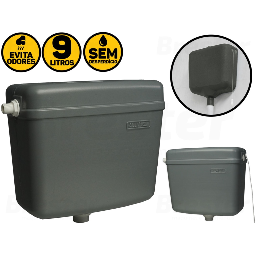 Caixa De Descarga Parede Plástica P/ Vaso Sanitário 9 Litros Metasul Branca Preto Bege Cinza Escuro Original