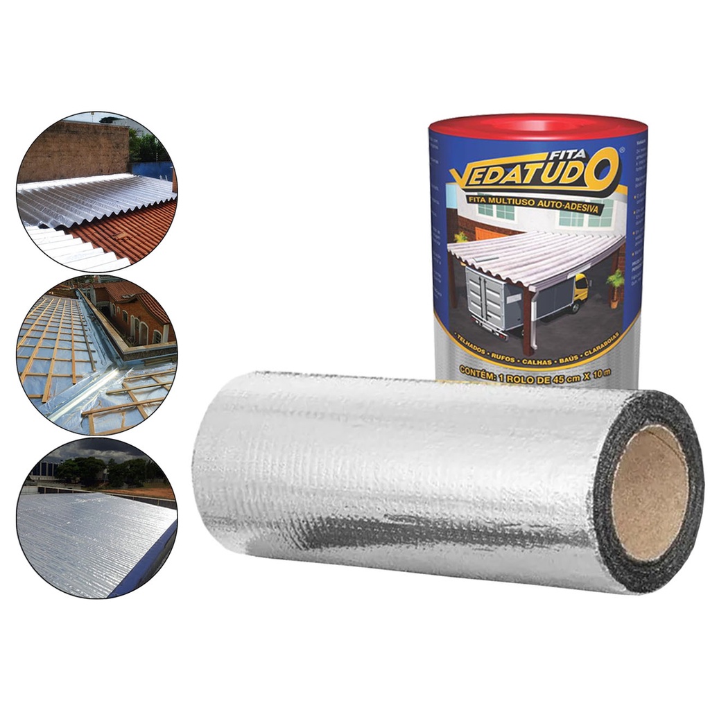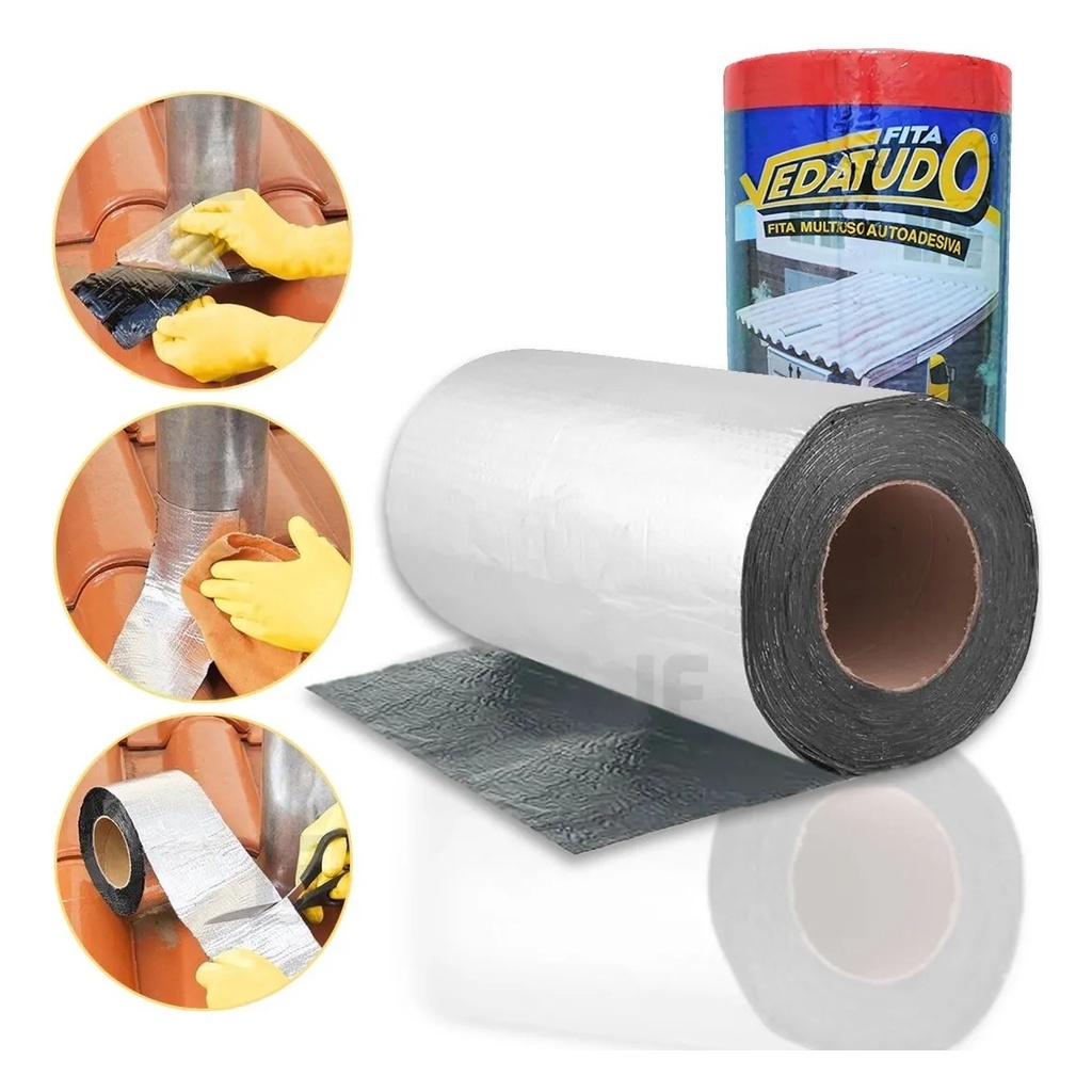 Manta Asfáltica Fita Auto Adesiva Aluminizada Para Telhados 10cm x 10m