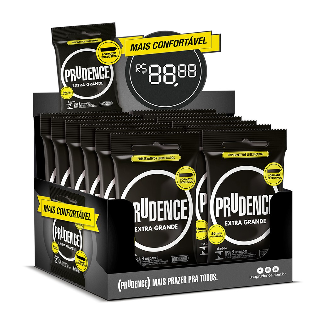 Caixa preservativo, camisinha Extra Grande 56 mm Prudence, total de 36 preservativos.