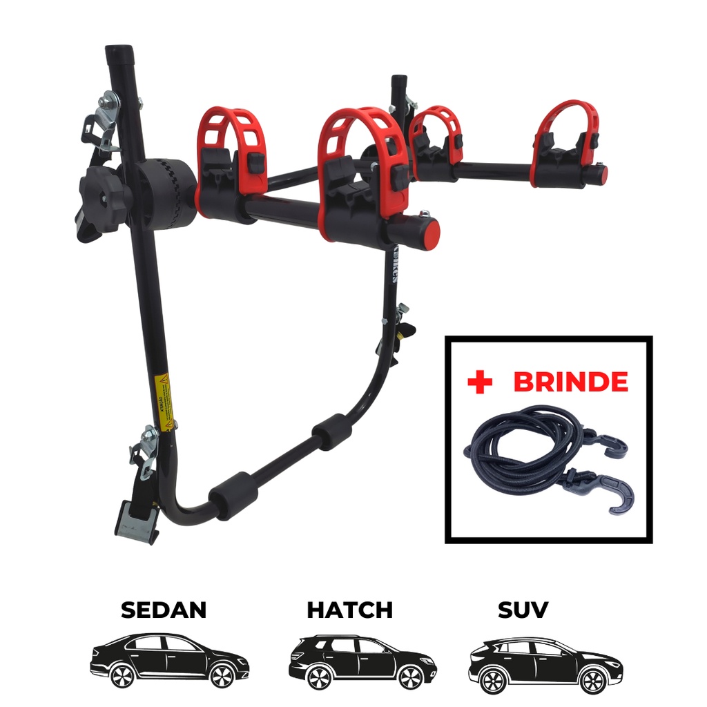 17 - Suporte para bike Transbike 2 bicicletas POP Preto tira Vermelha Sedan Hatch MTB Speed