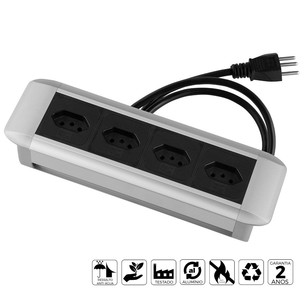 Extensão Caixa de Tomadas Embutir em Alumínio 4 Tomadas 10A Line