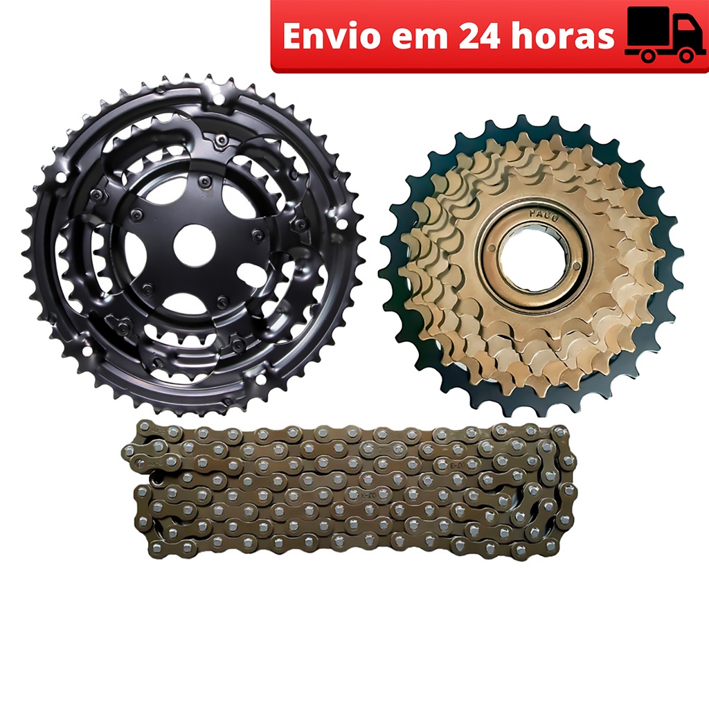 Kit Pedivela Bike Coroa Tripla + Catraca 7v + Corrente Relação 21v Mtb