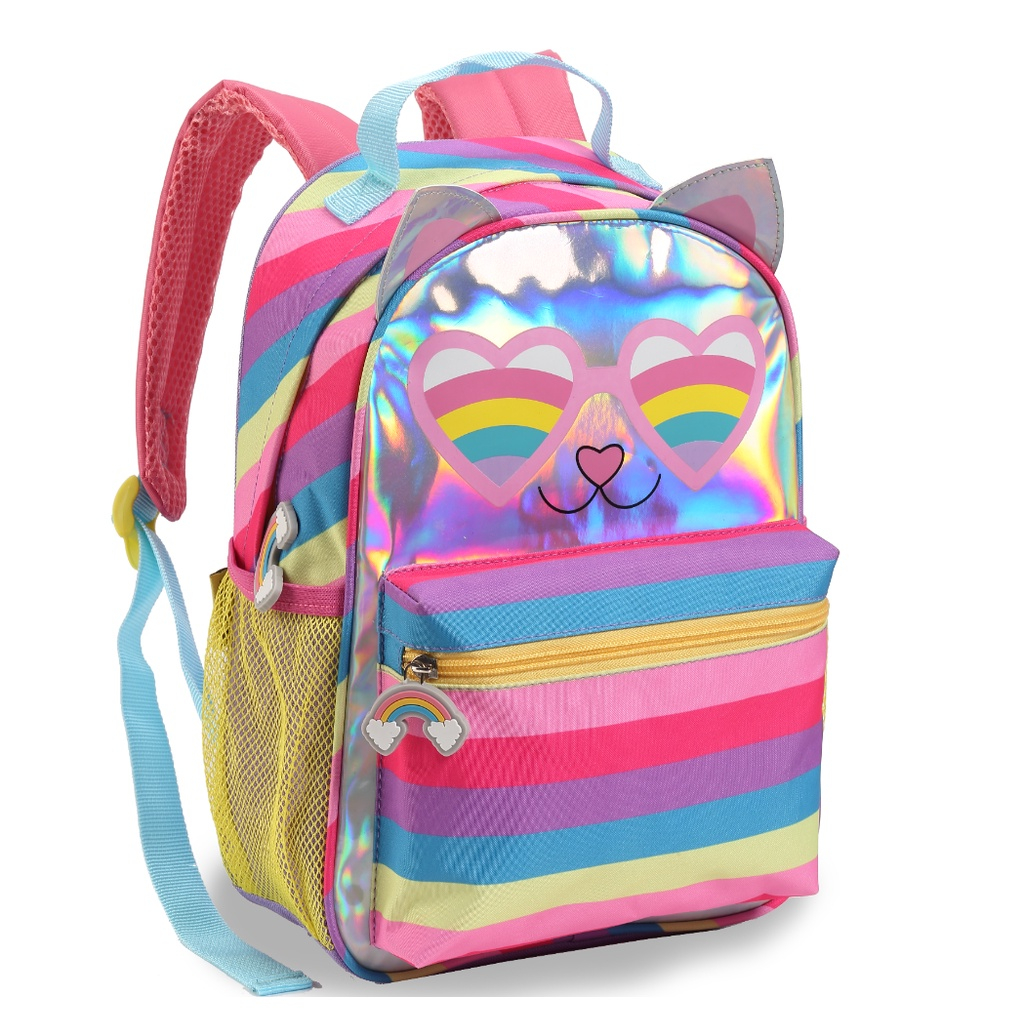 Mochila escolar Infantil menina gatinha arcoiris 42 Cm para criança de costa grande