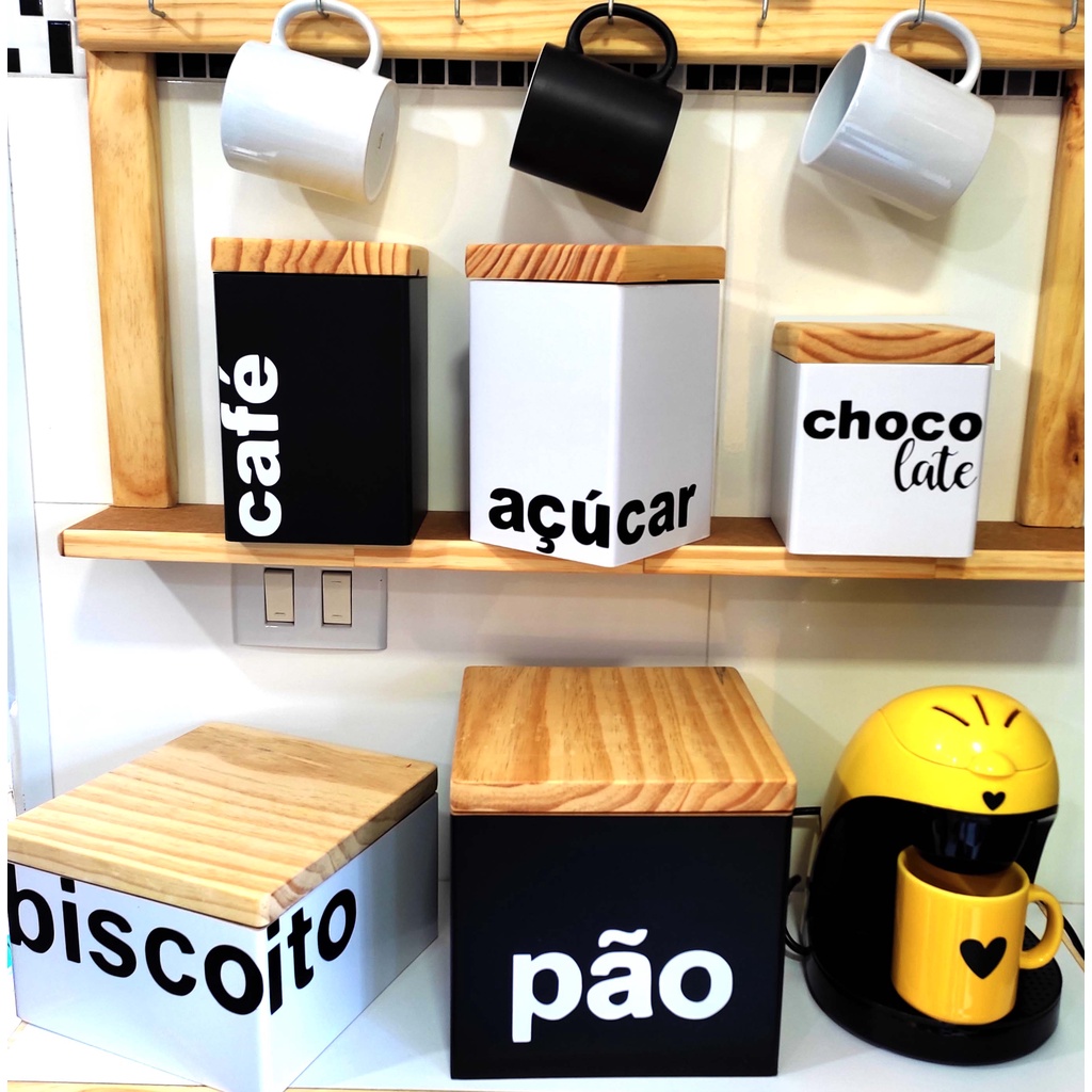 Kit c/ Porta Café Porta Açúcar e Porta Chocolate Madeira Pinus MDF