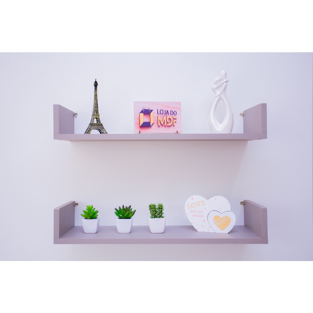 Kit 2 Prateleiras U Mdf 60x20 Cinza Nicho Livros Revista