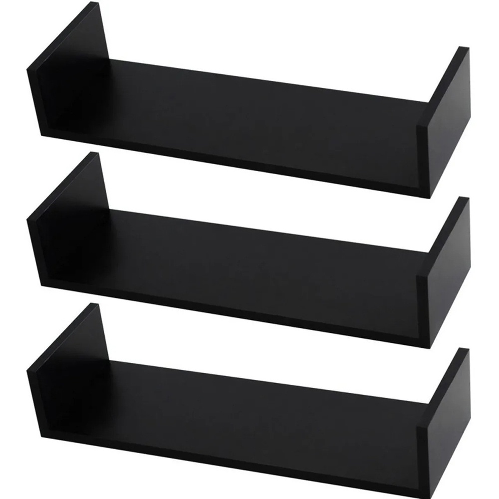 Kit 3 Prateleiras U Mdf 65x20cm Preto Nicho Livros Revista