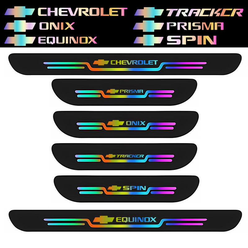 Kit 1/4 Adesivos Refletivo Protetor Porta Chevrolet, Universal Preto, onix spin tracker prisma equinox Acessórios