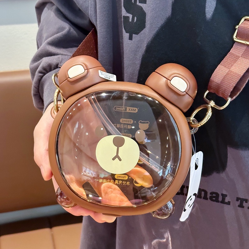 750ml Garrafa De Água Lovely Bear Double Drinking Kettle Copo Para Pipetas De Grande Capacidade Tritan Copolyester Bico De Silicone