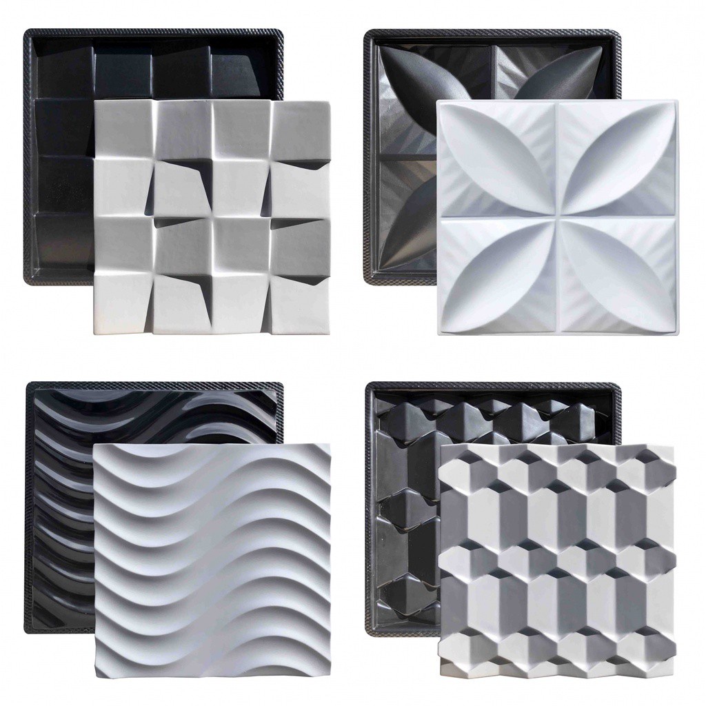 Kit 4 Formas Gesso e Cimento Placa 3D ABS 40x40cm