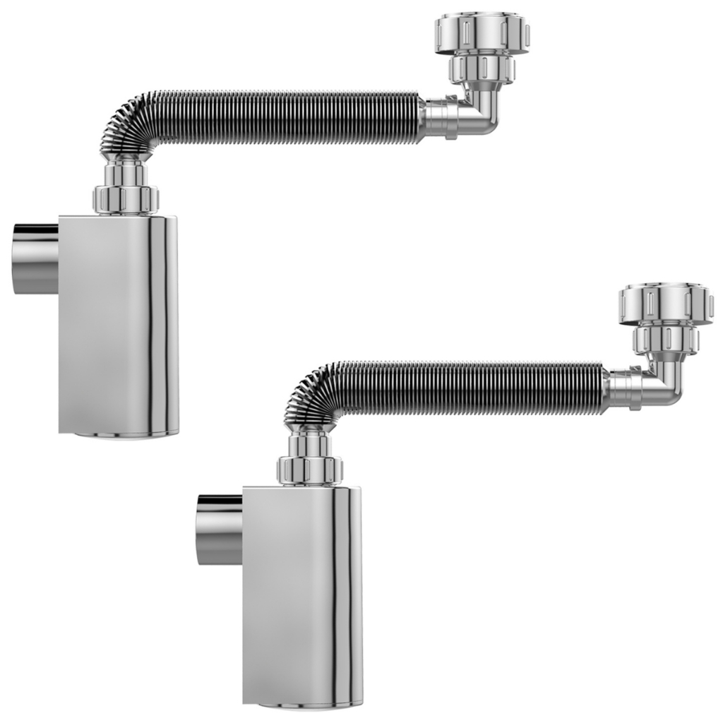Kit 2 Sifão Flexível Com Copo De Parede Tubo Extensivo Sanfonado Cromado - Blukit