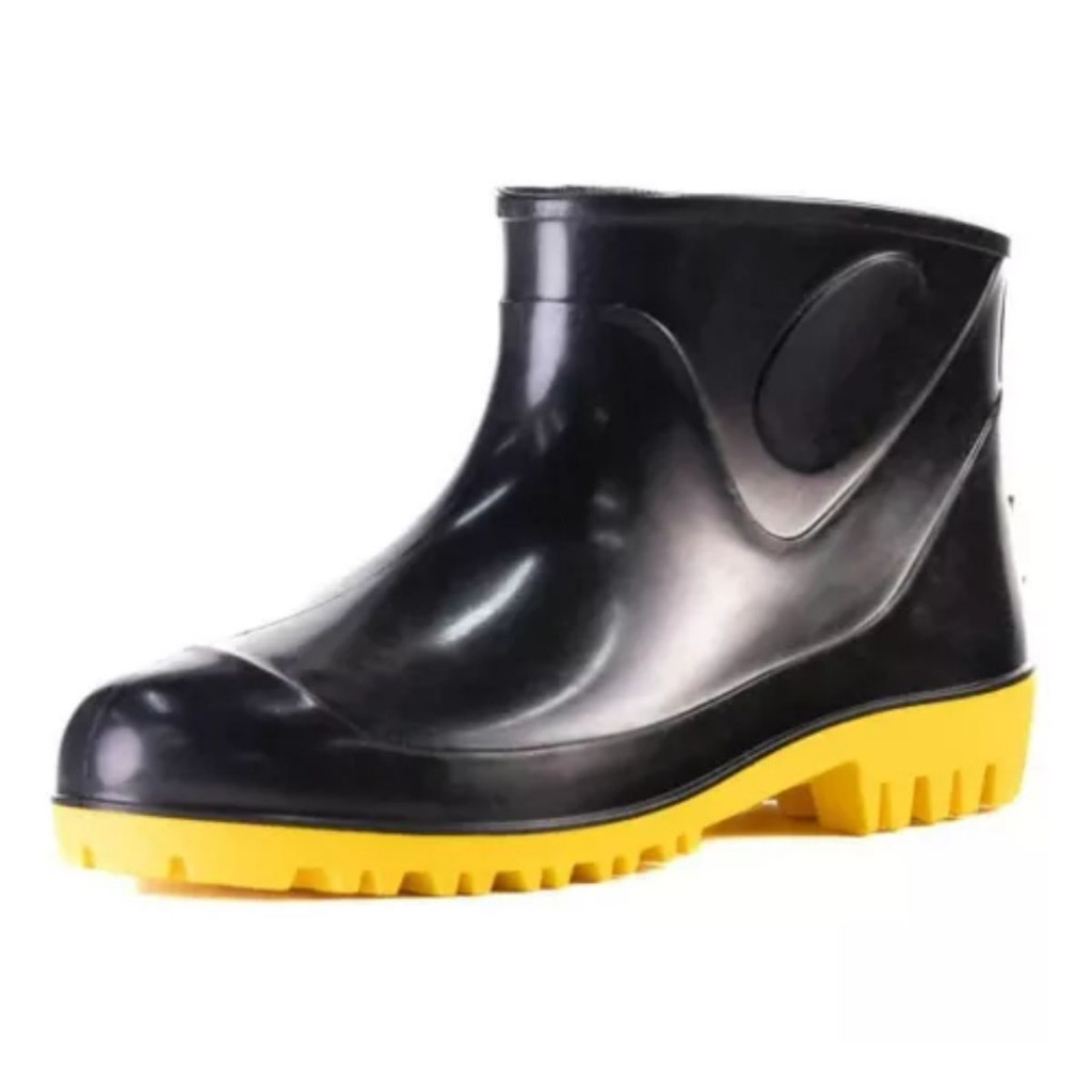 Bota Botinha Galocha Chuva Limpeza Pesca Motoqueiro Polaina Pescaria Motoboy Motociclista Para Chuva PVC Borracha Impermeável Cano Curto Preta Solado Amarelo Trabalho Faxina