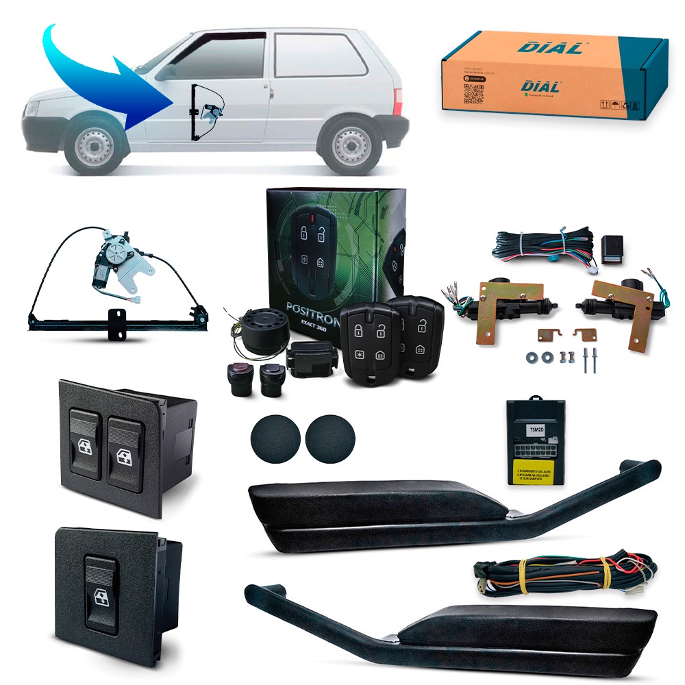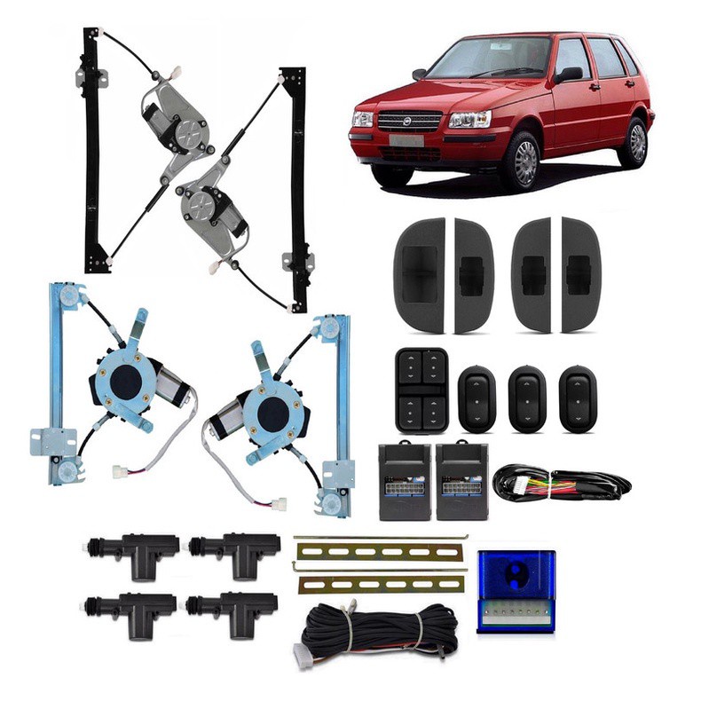 Kit Vidro Elétrico + Trava Uno Quadrado Fire / Mille 4 Portas Completo Inteligente (1985 a 2014)