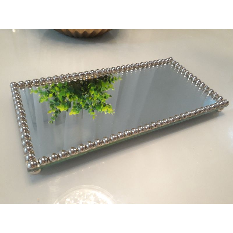 Bandeja Espelhada Decorativa Prata Cozinha Lavabo Sala 20x10