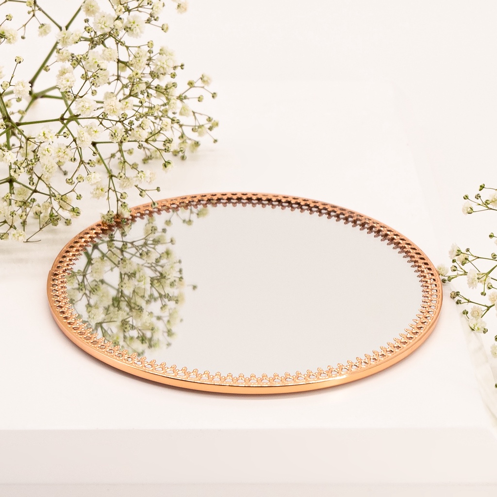 Bandeja em Metal Espelhada Espelho Decorativo Redondo P/ Lavabo/Sala/Cozinha Prata/Dourado/Rosé Gold