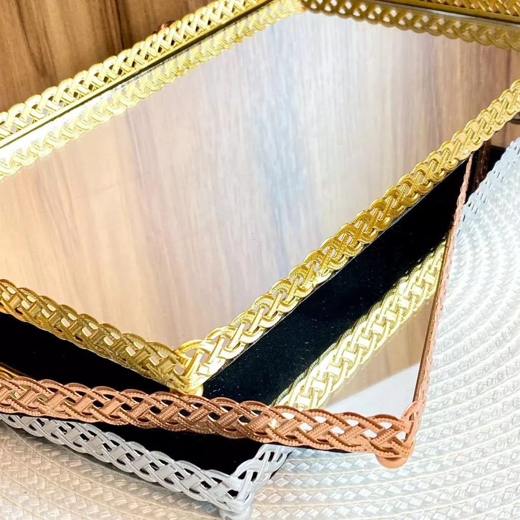 Bandeja Espelhada Decorativa Luxo Pérolada Dourada Prata Branca Sala Lavabo Banheiro