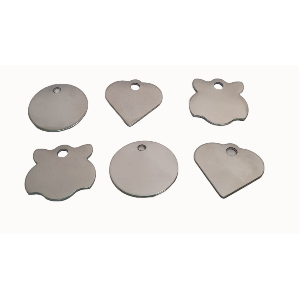 placa pet identificação gato e cachorro em inox sem gravação redonda coração gato osso