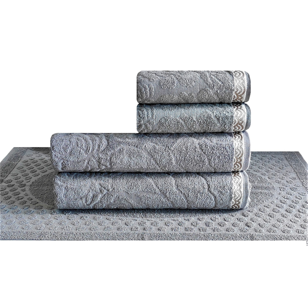 Kit 5 Peças Toalhas 2 Banho 2 Rosto 1 Piso Barra Aveludada - Sophia.