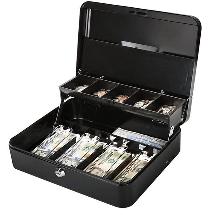 Caixa De Dinheiro Niqueleira Gaveta Noteiro Preta Com Chave