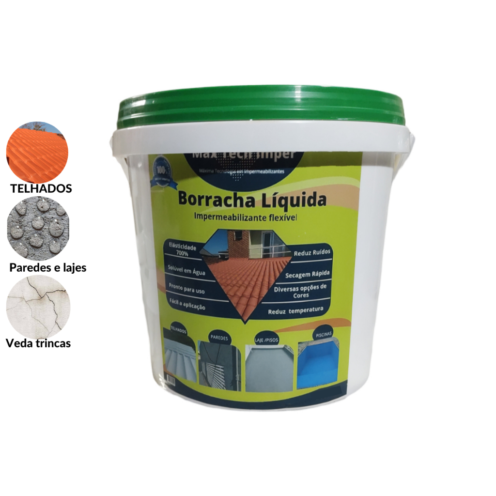 Borracha Líquida 3,6kg impermeabilizante de telhados, laje, paredes, piso. Elasticidade e resistência, superior a manta líquida impermeabiliza telhados