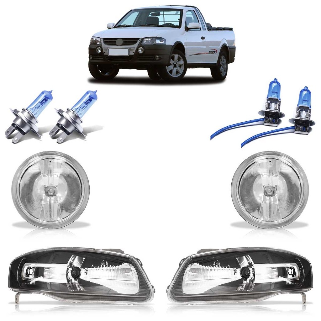Kit Par Farol Dianteiro Saveiro Surf G4 2006 A 2010 Máscara Negra + Par Farol Milha Superior