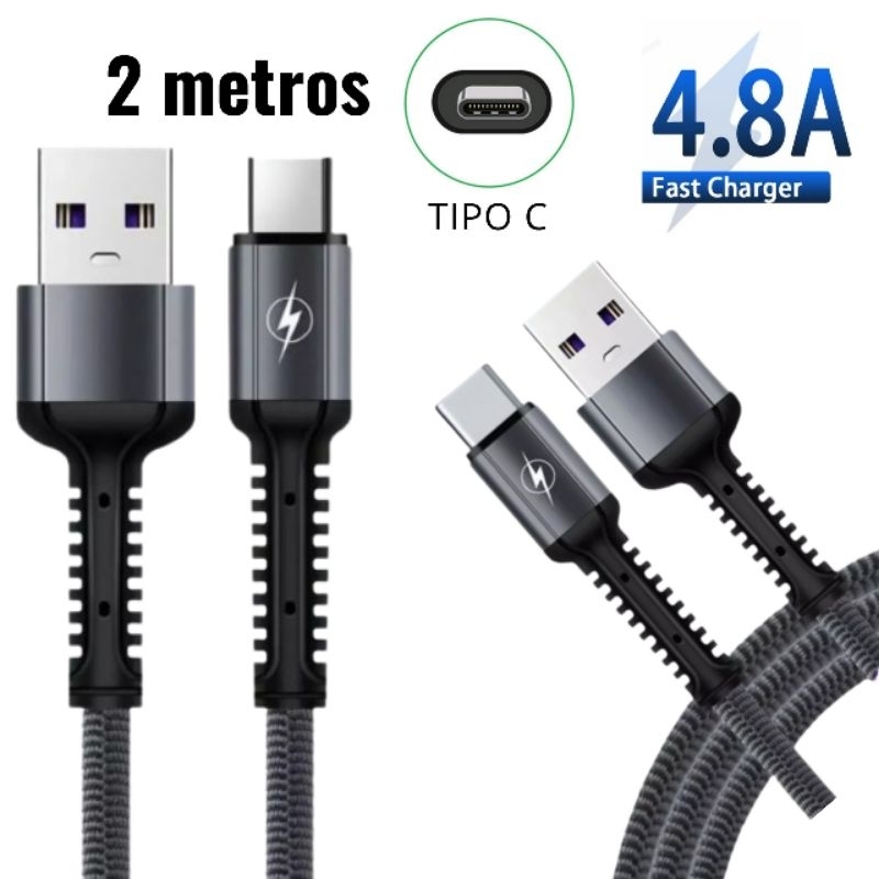 Cabo Carregador 2 Metros Tipo C USB Turbo Nylon 4.8A
