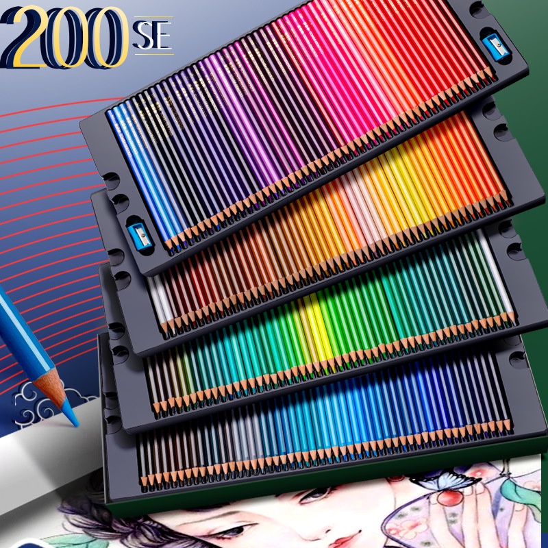 Conjunto de Lápis de Cor (200/120/72/48 Cores) - Óleo, Aquarela e Esboço - com Estojo