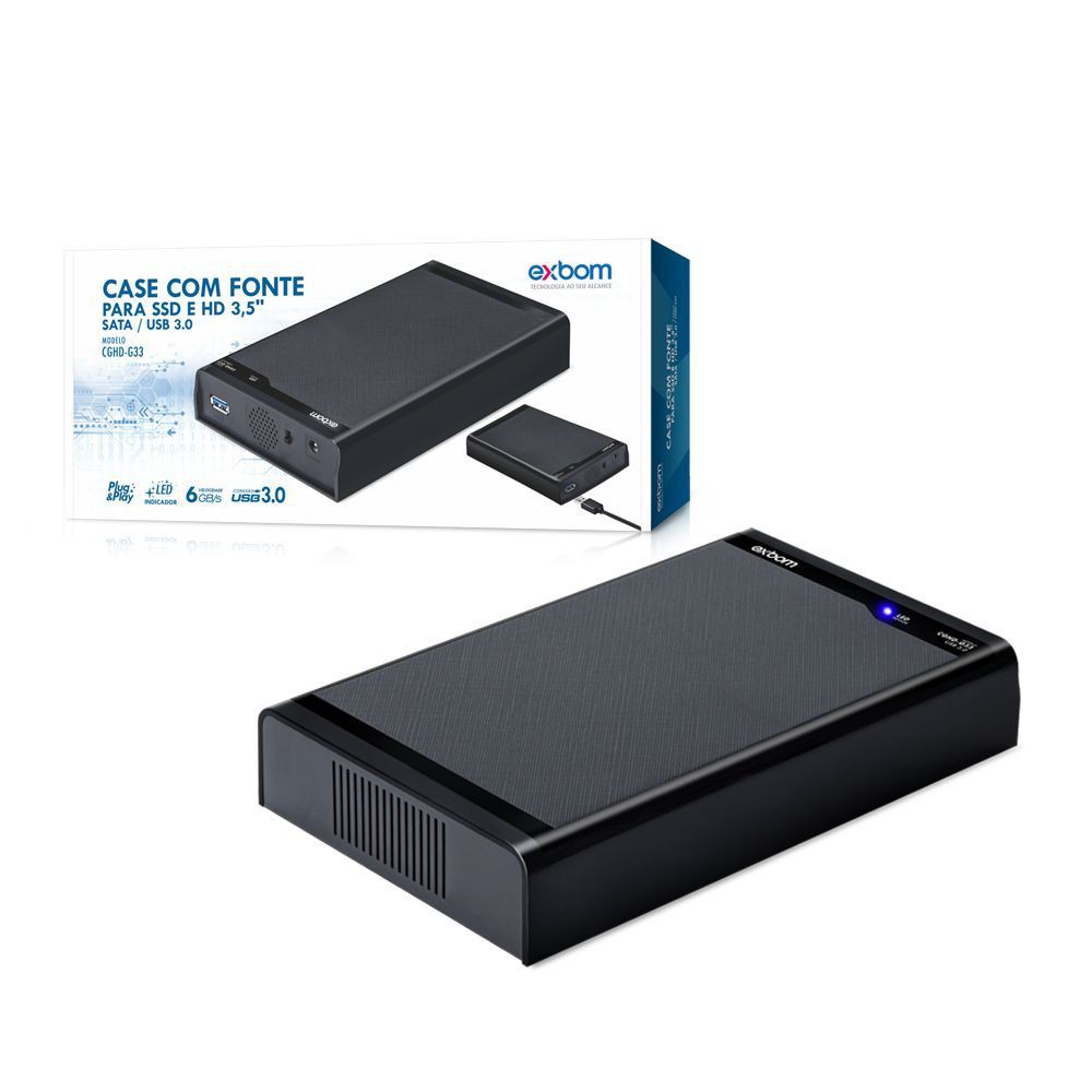 Case USB 3.0 para HD / SSD 3.5 e 2.5 polegadas SATA III até 10TB Fonte Externa Exbom CGHD-G35