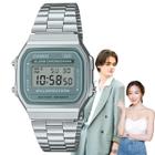 Relógio de Pulso Casio Feminino Masculino Digital Aço Inóx Vintage Resistente Água Quadrado Pequeno Casual Prata A168WA-3AYDF