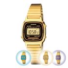 Relógio de Pulso Feminino Casio Vintage Mini Quadrado Original Moderno LA670WGA Pequeno Digital Retro Dourado