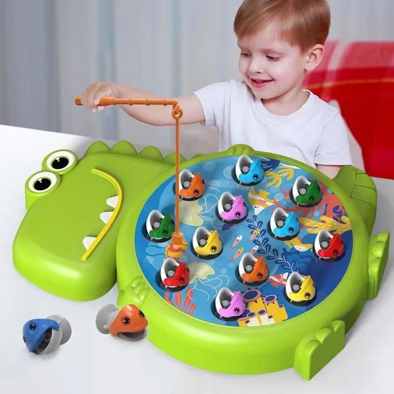 Jogo de Pesca Magnética com Dinossauros - Brinquedo Educativo Montessori para Crianças