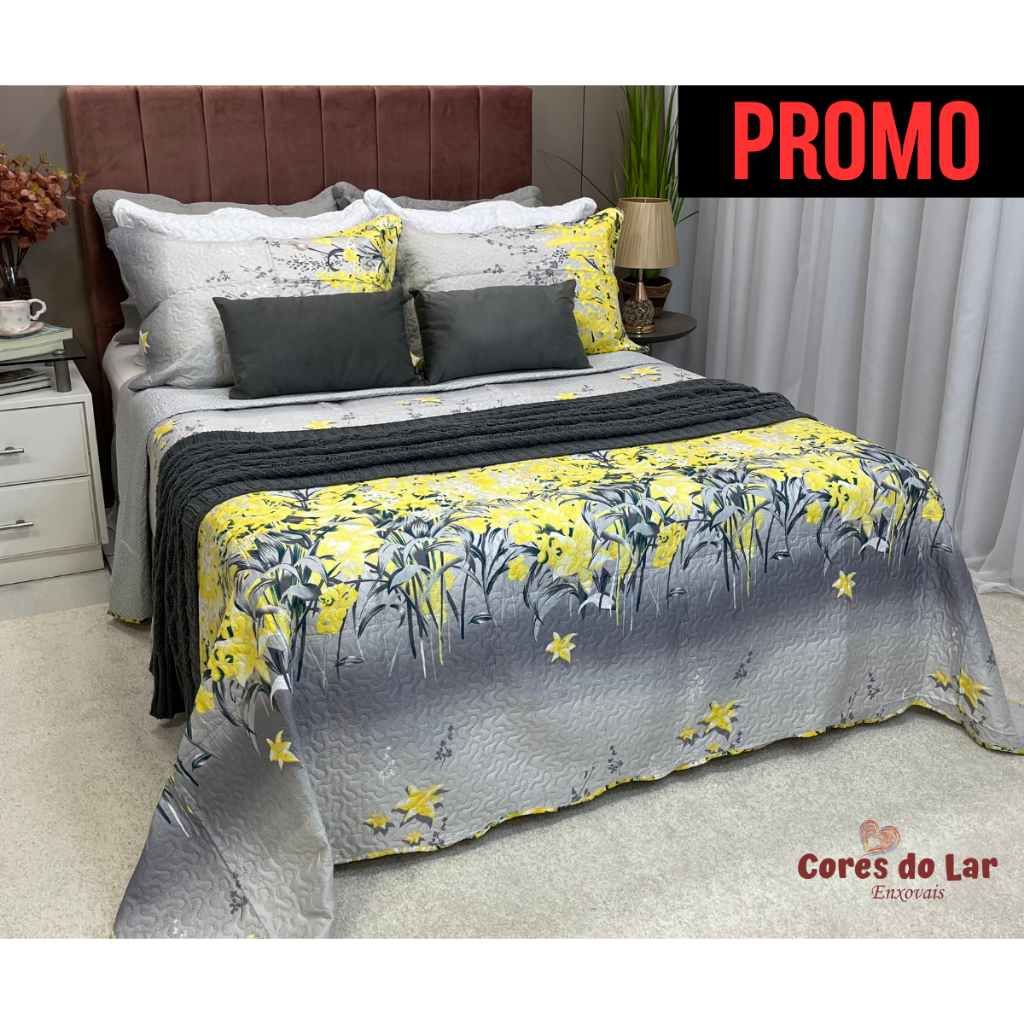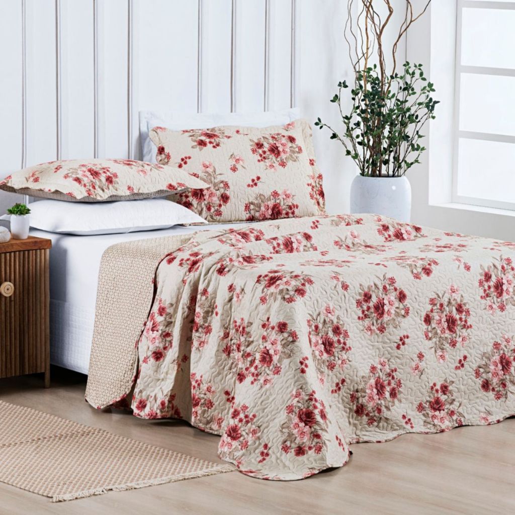 Kit Cobre Leito Colcha Queen Bouti Dupla Face Estampado 3pçs