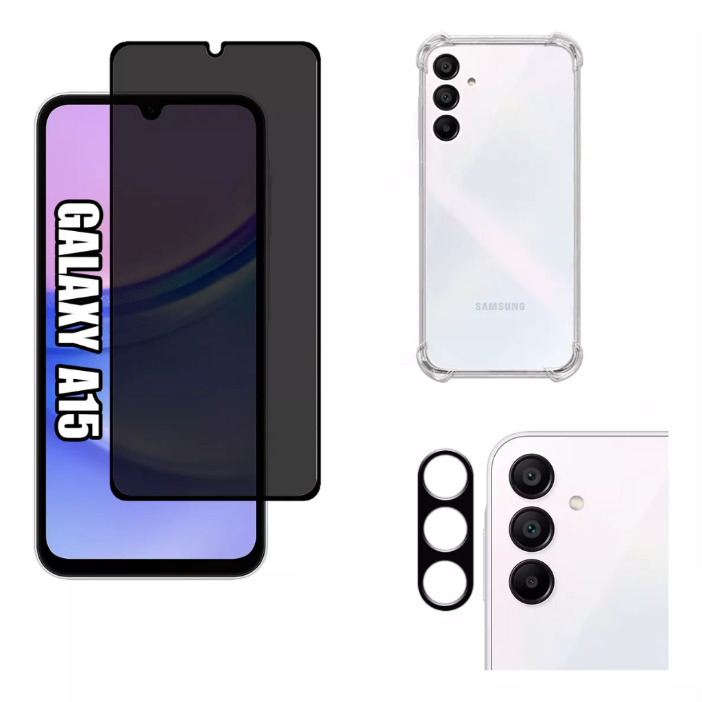 KIT Para Samsung Galaxy A15 6.5 | Película de Privacidade 3D - Capa Capinha Anti Impacto - Película da Câmera 3D