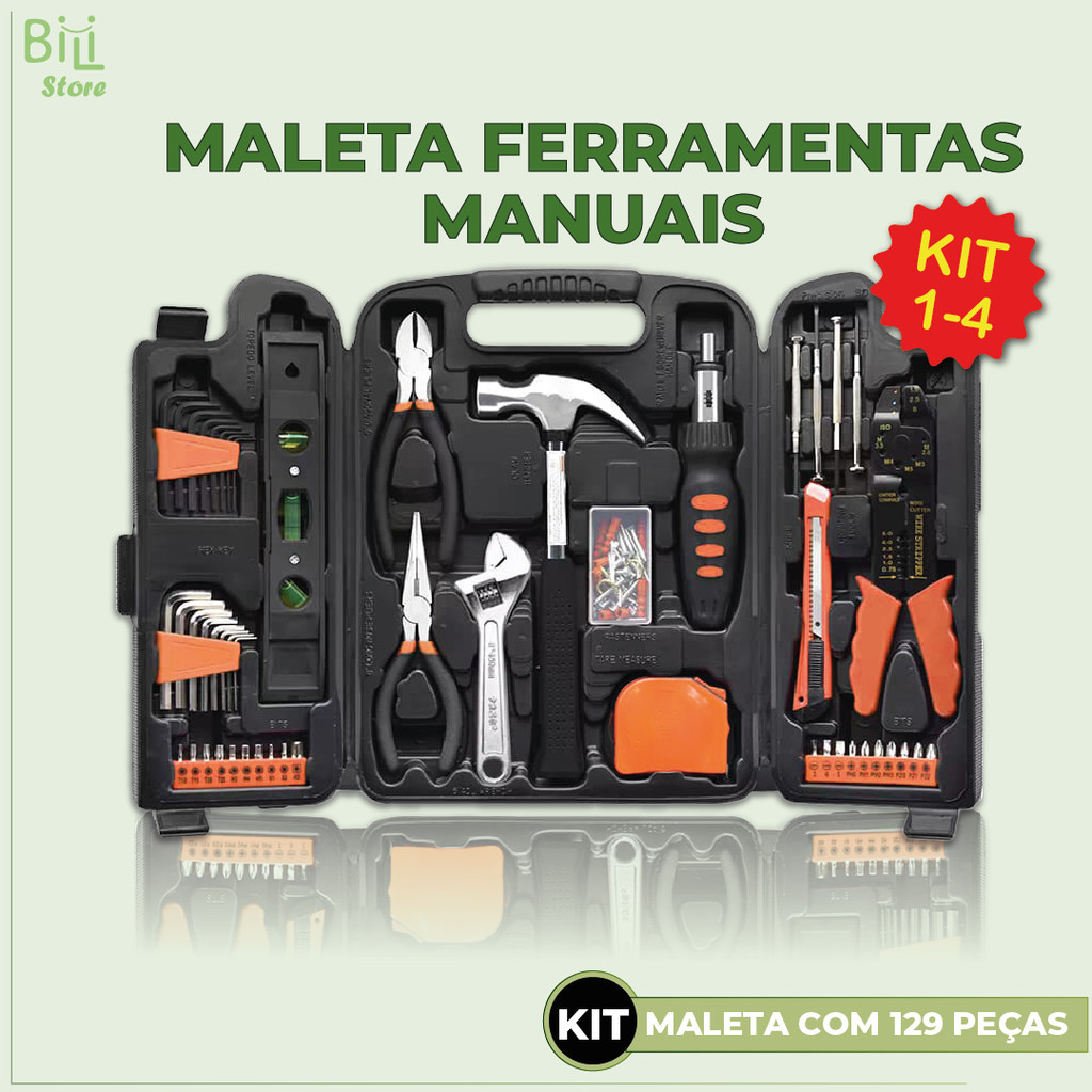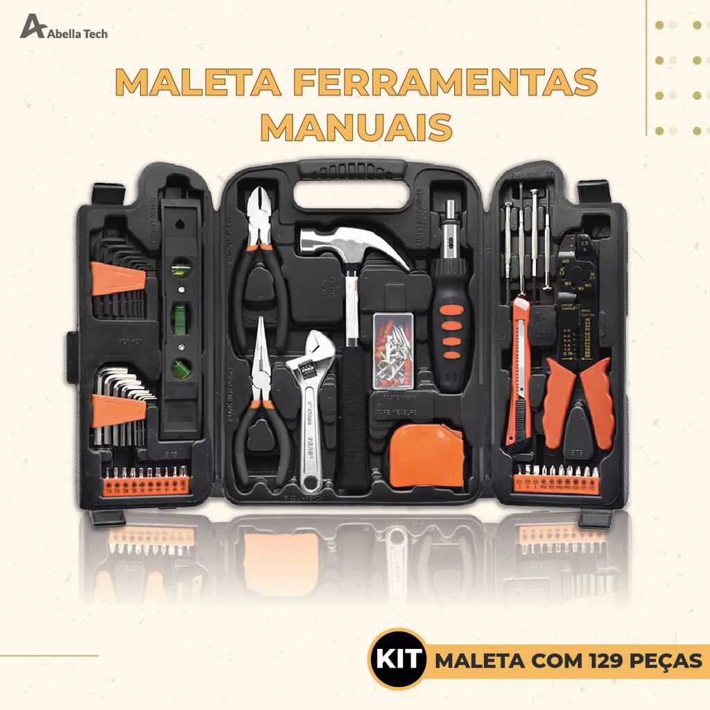 Jogo Kit de Ferramentas 129 Peças Maleta Serviços Gerais + Soquetes Chave Catraca Reversível