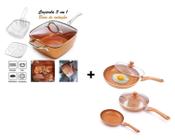 Kit 3 Panela Frigideira Cozinha Sem Óleo Cerâmica e Titânio Antiaderente Cobre Cozinha