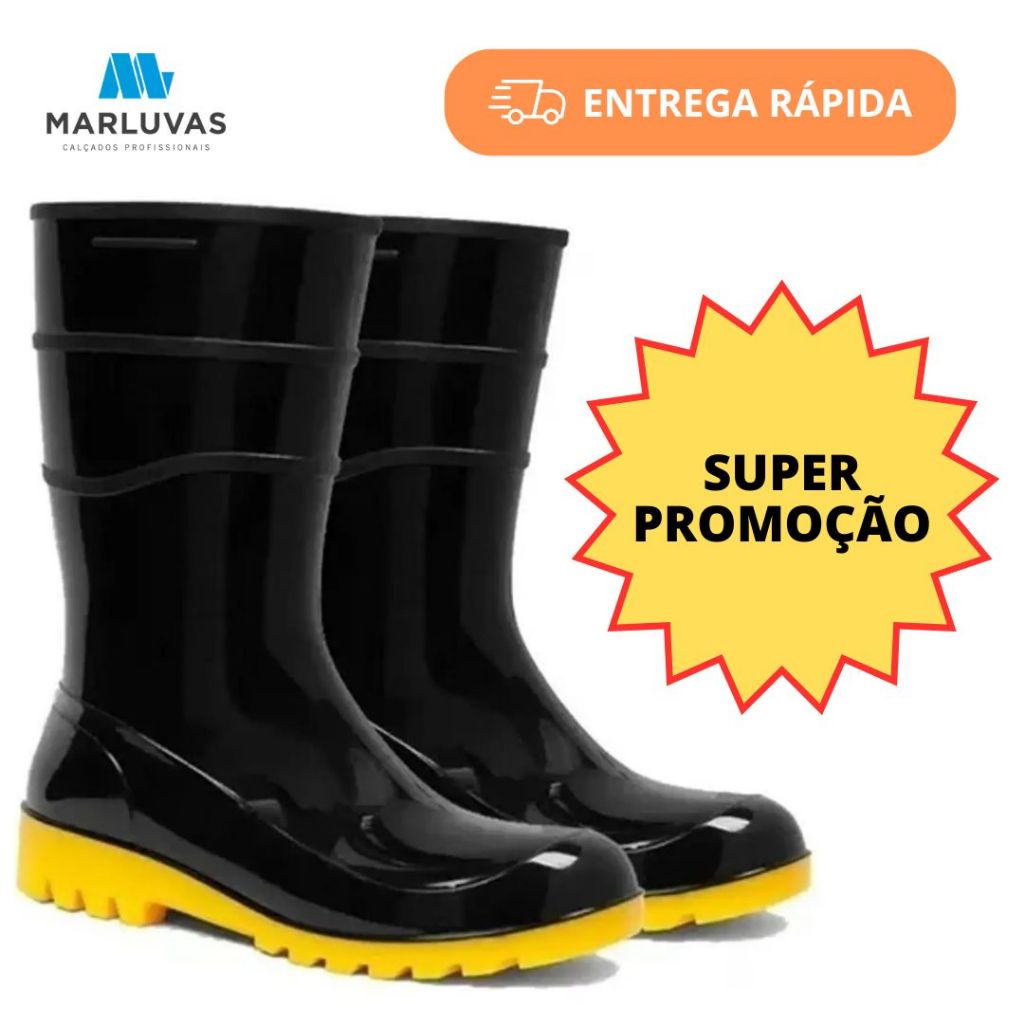 Bota De Pvc Galocha Motoqueiro Borracha Chuva Vonder Nova Galocha Impermeável Cano Médio Preta com sola Amarela