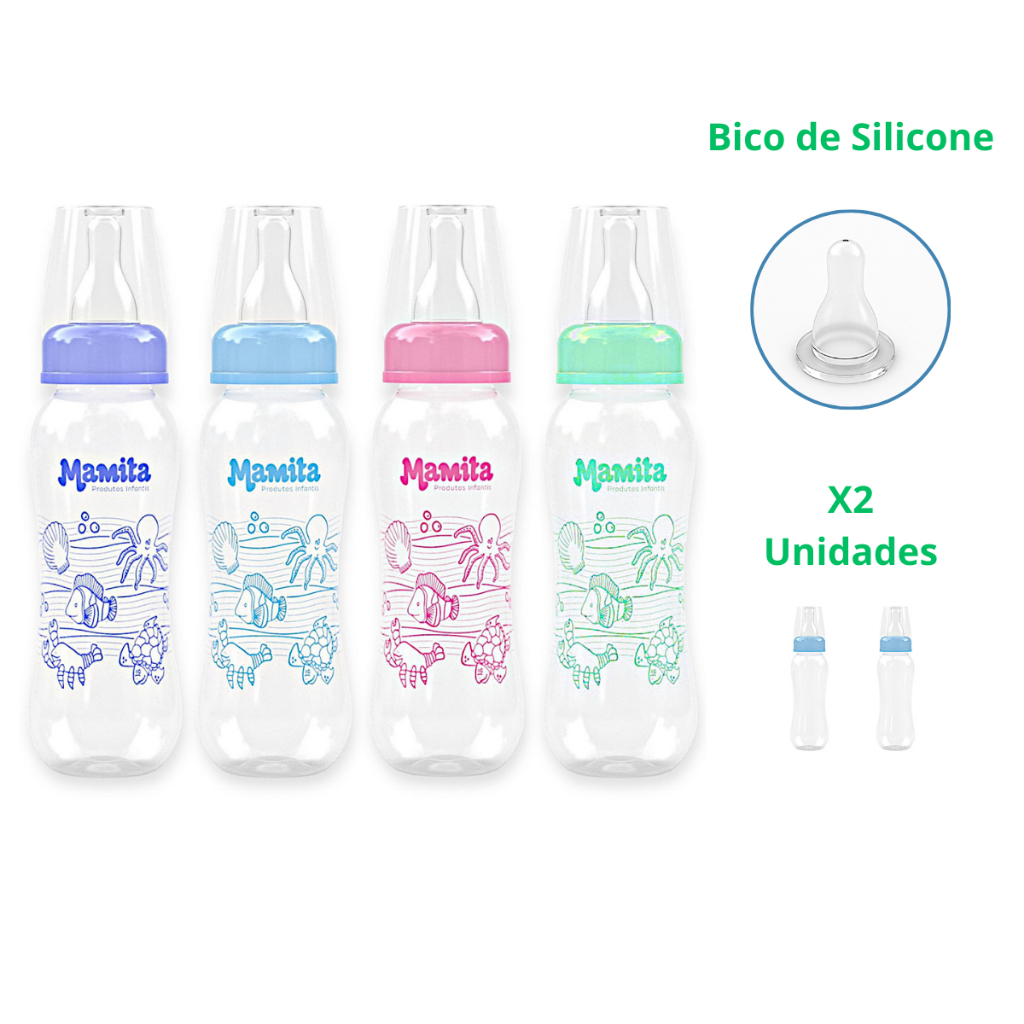 Kit 2 Mamadeiras Plus Decorada 240 ml - Mamadeira 240ml Bico de Silicone Redondo - PACOTE COM 2 UNIDADES