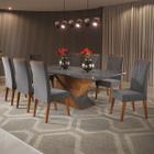 Mesa De Jantar 8 Lugares Perla Com Vidro Mel/veludo Cinza/grafite - Viero Móveis