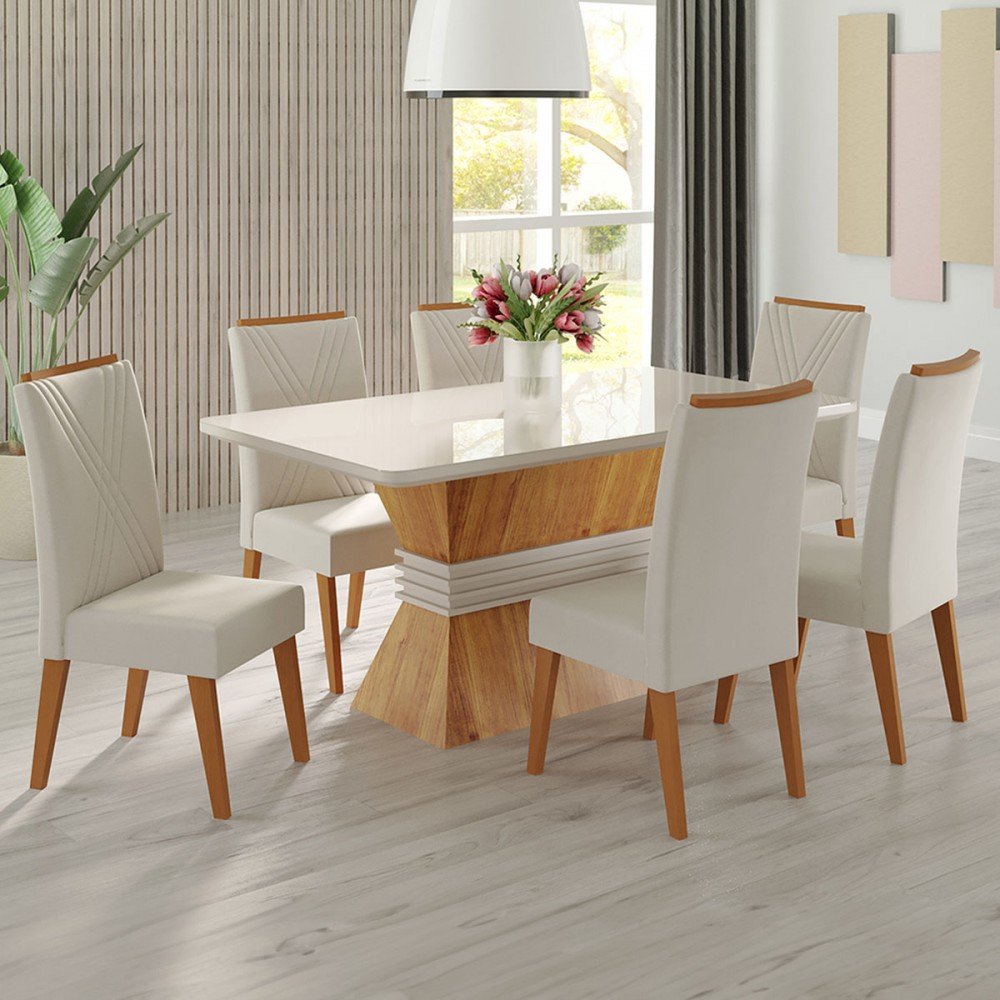 Mesa de Jantar 6 Lugares Jolie com Vidro Mel/marfim/off White - Viero Móveis