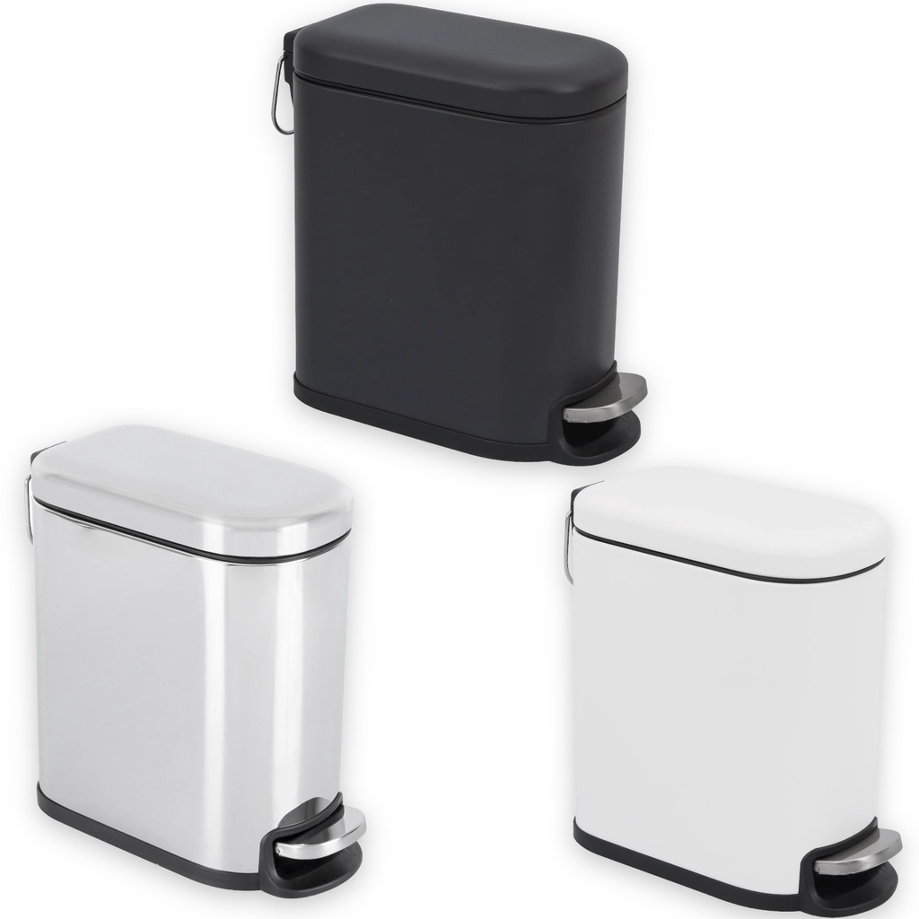 Lixeira Retangular Slim 6 Litros com Pedal Inox Branco Preto Cozinha Banheiro Apartamento Globalmix