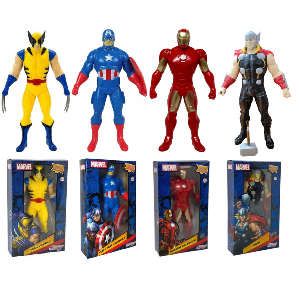 Kit com 4 Bonecos Wolverine/Capitão América/Homem De Ferro/Thor Heróis Marvel - Coleção Vingadores