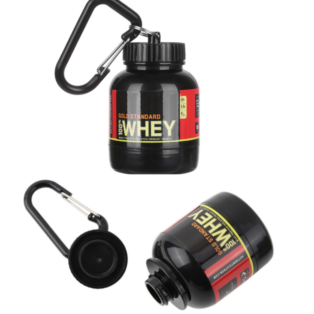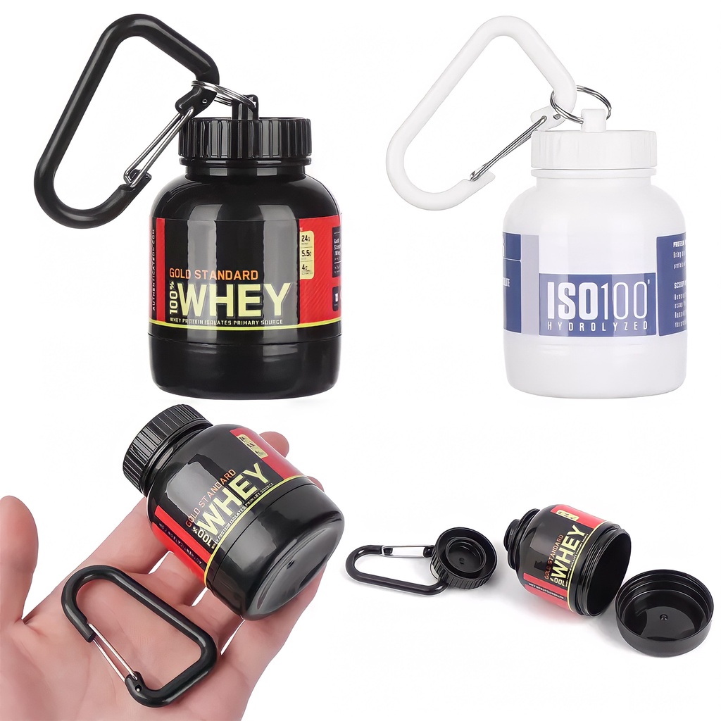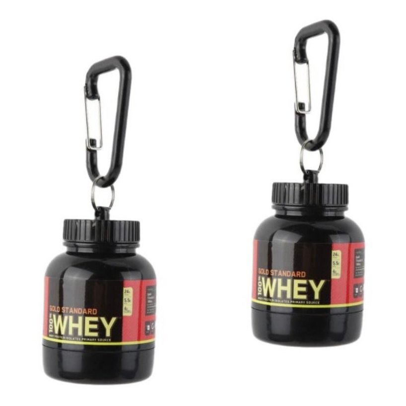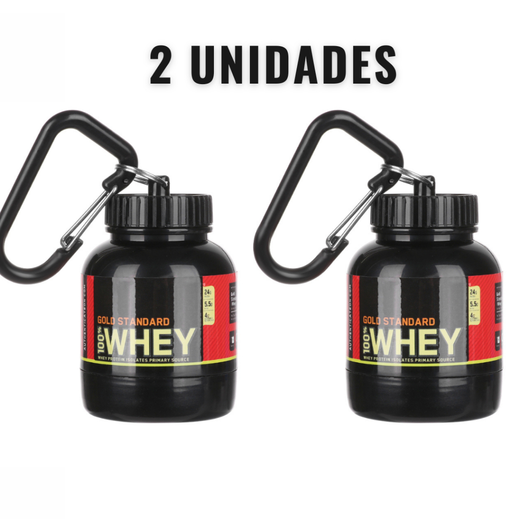 Kit 02 Porta Whey Suplementos Funil Chaveiro Whey Protein Pré-Treino Bcaa, Mini Whey Protein