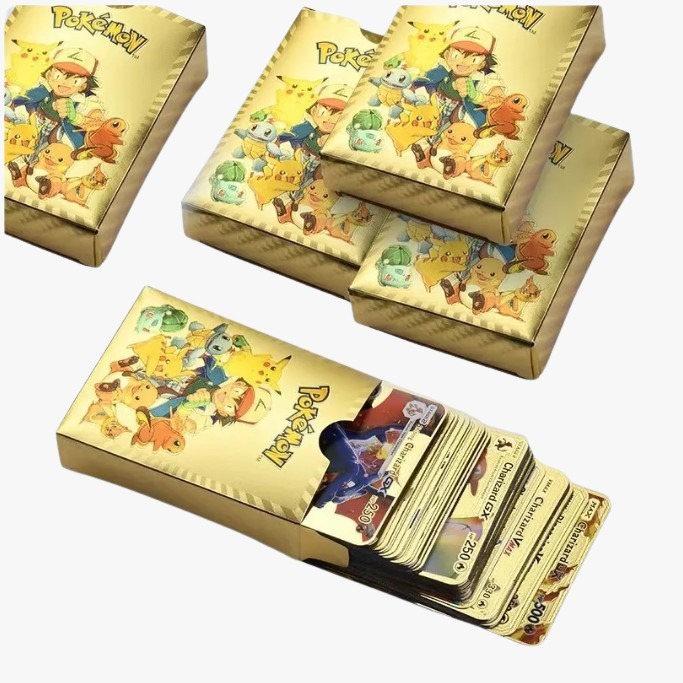 Caixa C/ 54 Cards Pokemon Folha De Ouro Brilhante