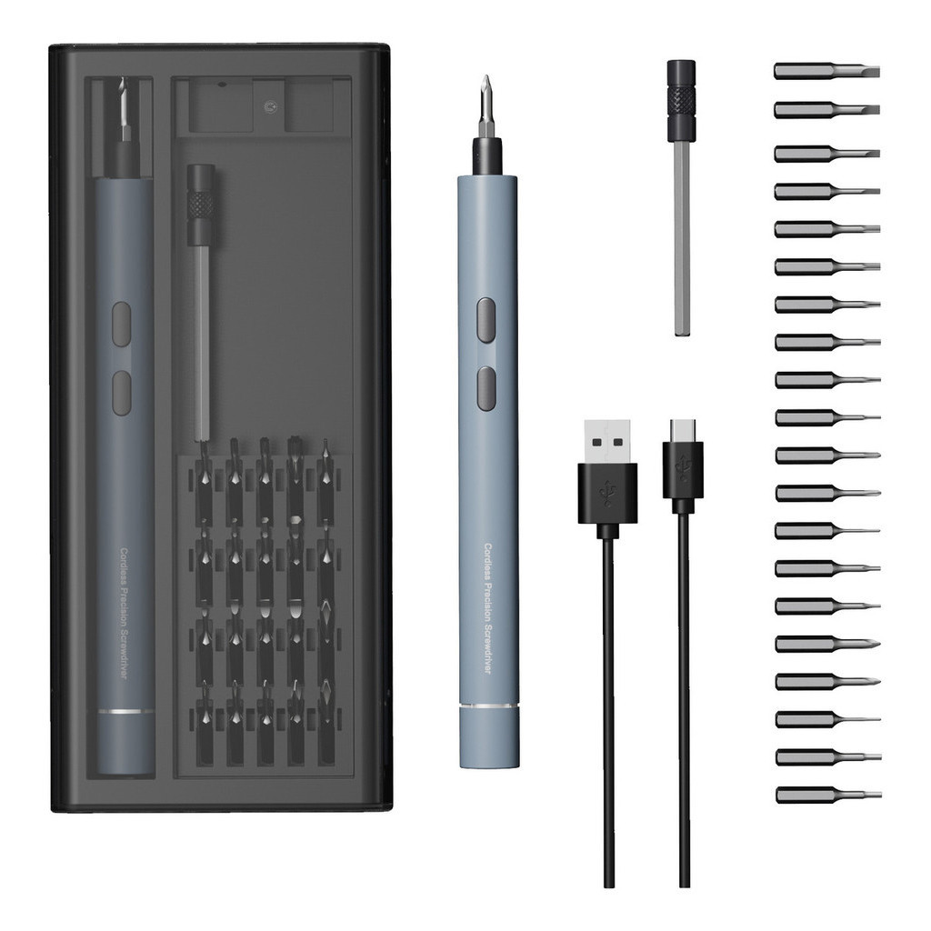 Chave de Fenda Parafusadeira Elétrica Sem Fio Com 28 Peças e Lanterna Integrada para Celular/Tablet/Notebook