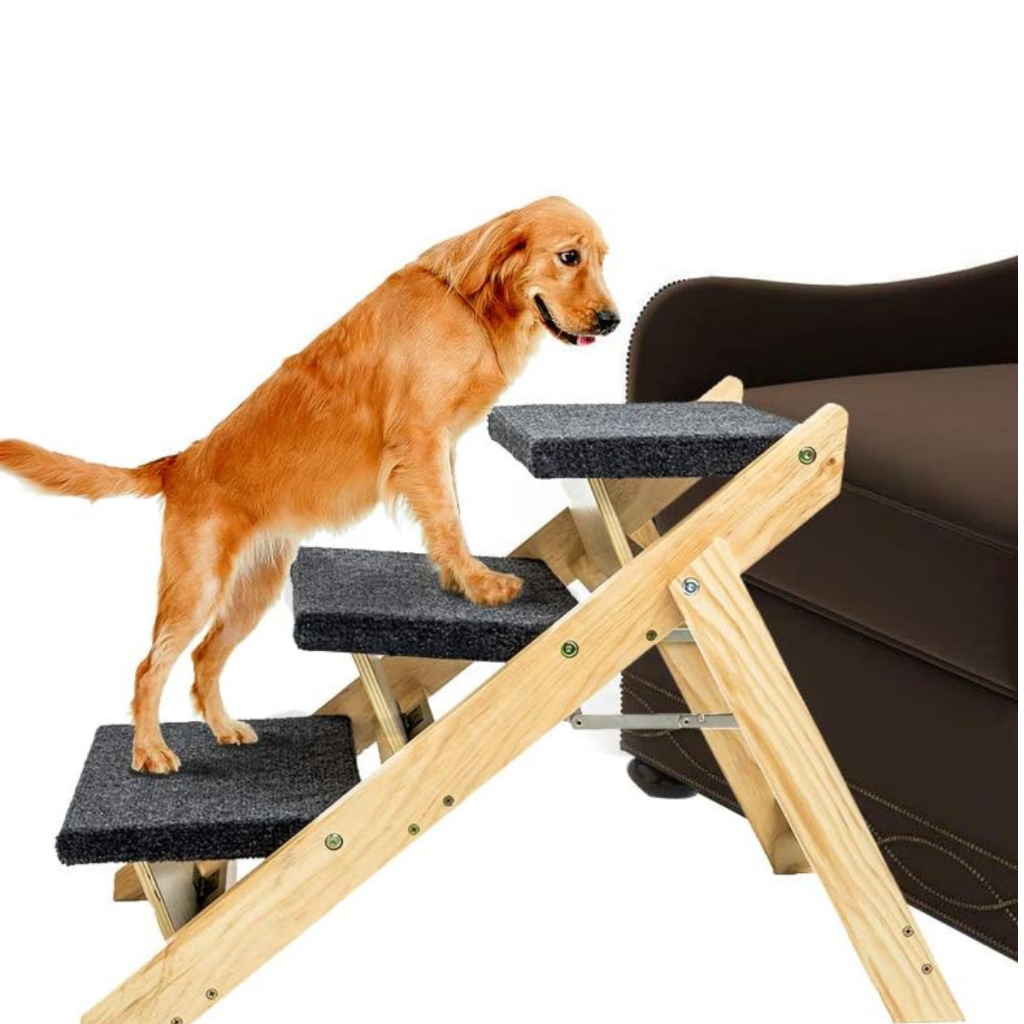 Escada Rampa Pet 3 Degraus Madeira Antiderrapante - Suporta Até 50kg