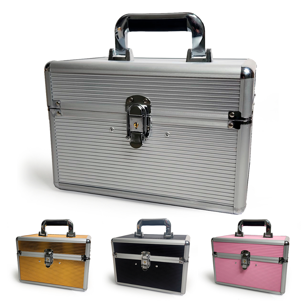 Oferta Maleta de Maquiagem Vazia Profissional com Pincel Cisne Porta Joias Organizador Media 4 cores Com 2 Bandeja Deslizante e Chave Com Cadeado Multiuso