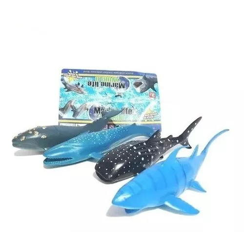 Kit Animais De Borracha Fundo Do Mar Peixes Baleia Tubarão Praia