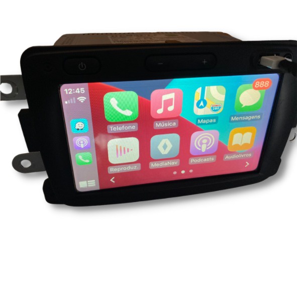 Acabamento Aro Moldura Do Radio Mídia Multimídia do Painel Central do Logan Sandero 2014 2015 2016 2017 2018 2019 Prata Original Renault