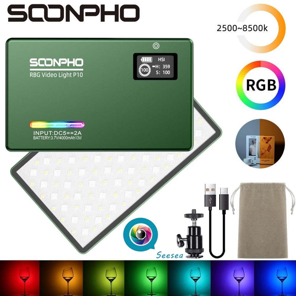 Soonpho P10 RGB Kit De Lâmpada De Vídeo De Saída Colorida De Luz De Câmera LED Dimmable 2500K-8500K Painel Luminoso Bicolor CRI 95 +