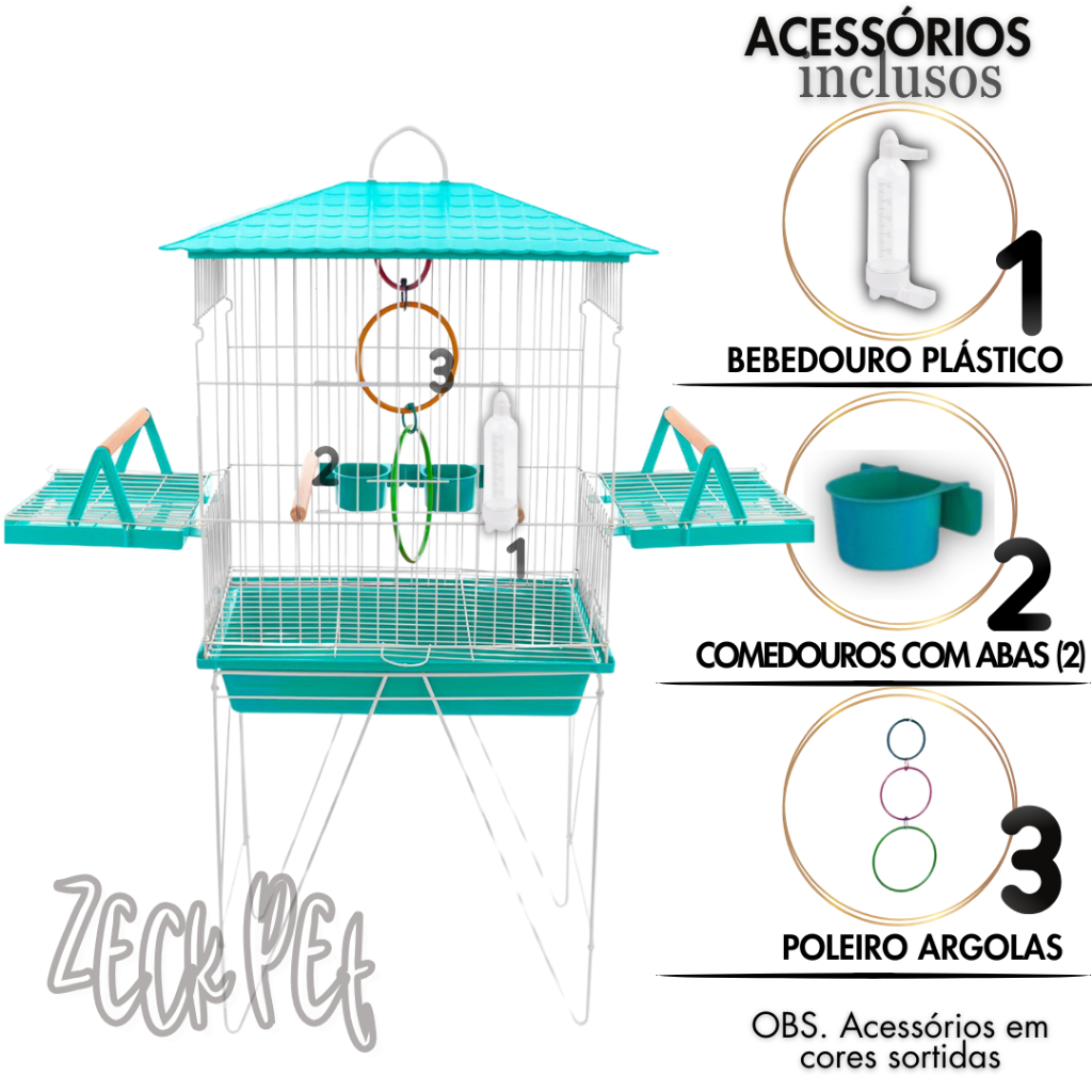 Gaiola Viveiro Para Calopsita com Bandejas Laterais C/Pé Grande Agapórnis Aves Mansas Completa