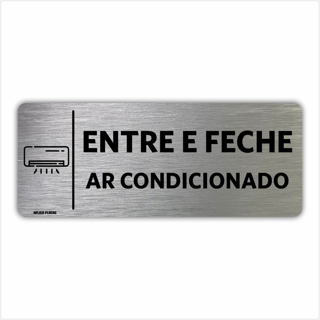 Placa Entre e Feche - Ar Condicionado - 8x20cm - Sinalização Indicação Setor Portas Portão Condomínio Empresa Comércio Sala Entrada